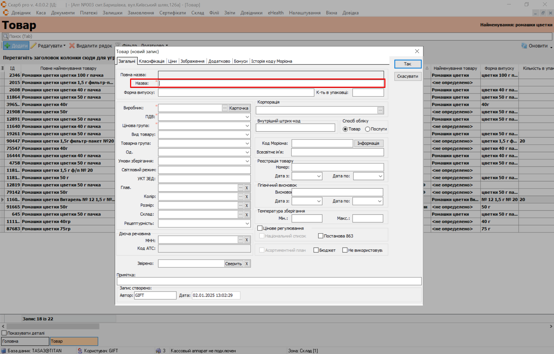 Щоб додати нову назву товару, на панелі інструментів натисніть Додати: